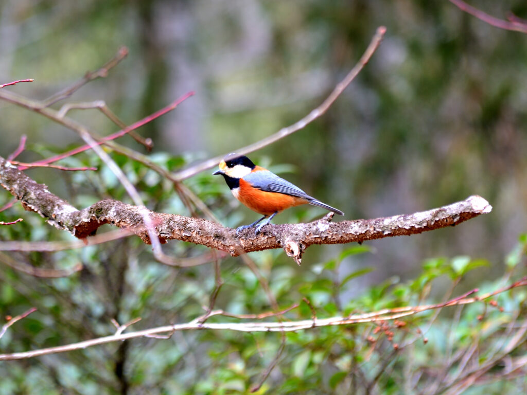 枝が幾重にも交差する木立の中から、ようやく見つけた一羽。